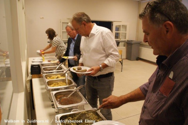 Met zicht op de schapen en de dijk van het Reitdiep schoven dinsdagavond 16 oktober leden van de Ondernemersvereniging Zuidhorn aan aan een smakelijk buffet met stamppotten van Andries en Minke Kingma. Ze waren te gast bij Jan Elting en zijn dochter Yvonne van het gelijknamige Stukadoors en Afbouwbedrijf in Aduard.