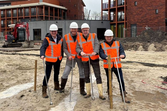 Het slaan van de eerste paal markeert het begin van een grote uitbreiding van Het Hooge Heem. Het aantal woonplekken groeit hiermee van 100 naar 160. Directeur Klaas Lindeboom: ‘We kunnen straks nog meer mensen helpen en ondersteunen. En dat doen we samen met het dorp.’