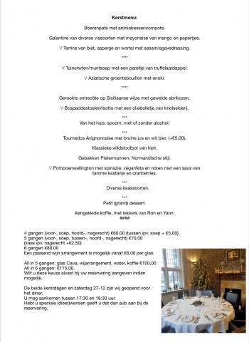 Op 24 december, 1e en 2e Kerstdag serveren wij een 4 gangen kerstmenu