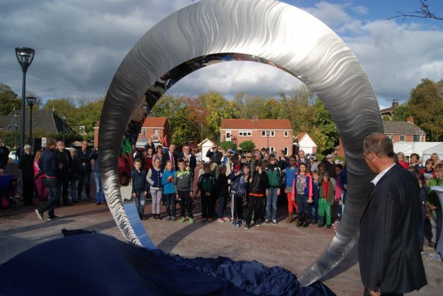 In een tent op de Overtuinen werden de genodigden ontvangen voor het onthullen van een kunstwerk gemaakt door Ronald A. Westerhuis. Ter gelegenheid van het 45 jarige bestaan van het architectenbureau van Doede Cruiming werd dit kunstwerk geschonken aan de gemeente. Als waardering voor de gemeente die door het goede voorbeeld te geven met de ontwikkeling van de Dorpskom veel ondernemers inspireerde ook te investeren.
