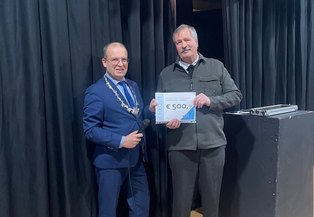 Vrijdagavond was wethouder Bert Nederveen als locoburgemeester aanwezig bij de feestelijke uitreiking aan Rederijkerskamer De Heidebloem uit Zevenhuizen. Ter ere van hun 150-jarig jubileum werd een cheque overhandigd. Een mooi en verdiend eerbetoon aan een vereniging met een indrukwekkende geschiedenis. Al anderhalve eeuw brengt De Heidebloem mensen samen met toneel in het Westerkwartiers dialect en draagt zij bij aan het behoud van streektaal, cultuur en saamhorigheid in het Westerkwartier.
