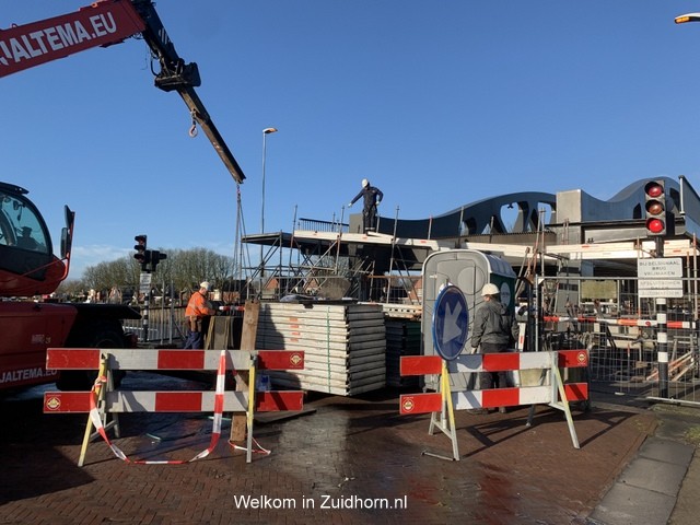 Woensdag 14 januari is volgens plan steigerbouwer Glajtema begonnen om de fiets,- en voetgangershelling te plaatsen bij de brug in Zuidhorn. Rijkswaterstaat doorlipe ene versnelde procedure bij de gemeente om deze noodzakelijke voorziening te realiseren. De verwachting is het werk in twee dagen is afgerond.