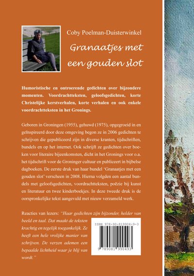 De tweede druk van "Granaatjes met een gouden slot" ISBN: 978-90-819904-9-3 is uitgekomen, het is mijn eerste werk waar ik erg aan gehecht ben geraakt, met name door het eerste gedicht "Moeders verjaardag" dat het begin is geworden van een nieuwe levensbestemming.