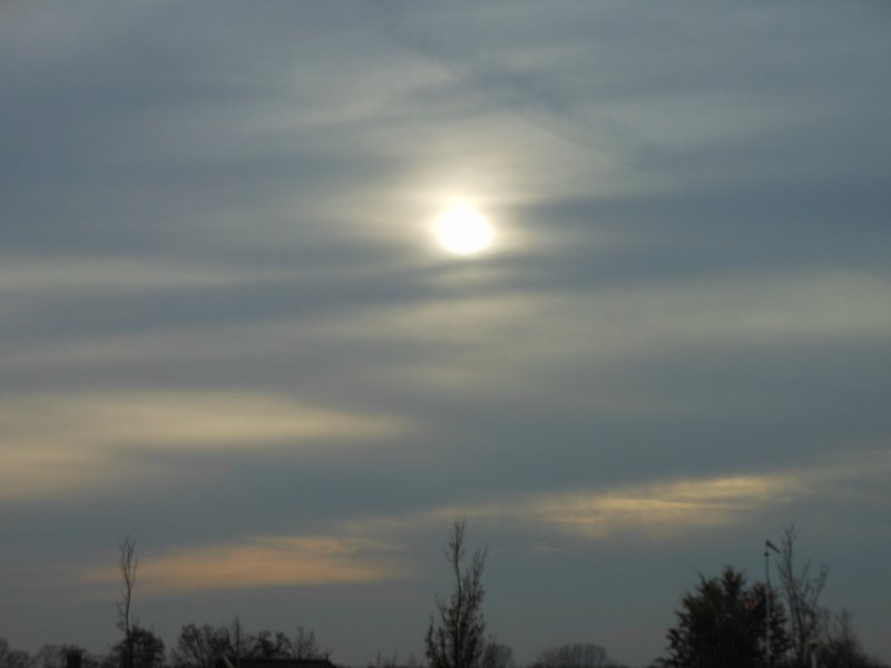 Op de foto: Vandaag een waterkoude dag met veel bewolking en zon "als achter matglas" met maximum van 6.0 C, wel bleef het overdag droog, Zuidhorn 21 november 2012.