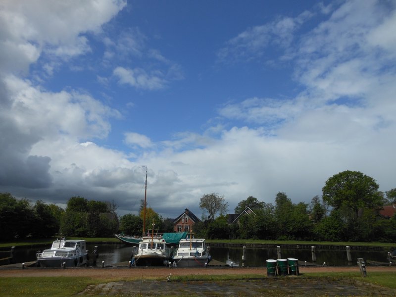 Op de foto: Op maandag mooie Hollandse wolkenluchten en buien, Zuidhorn 16 mei 2016.