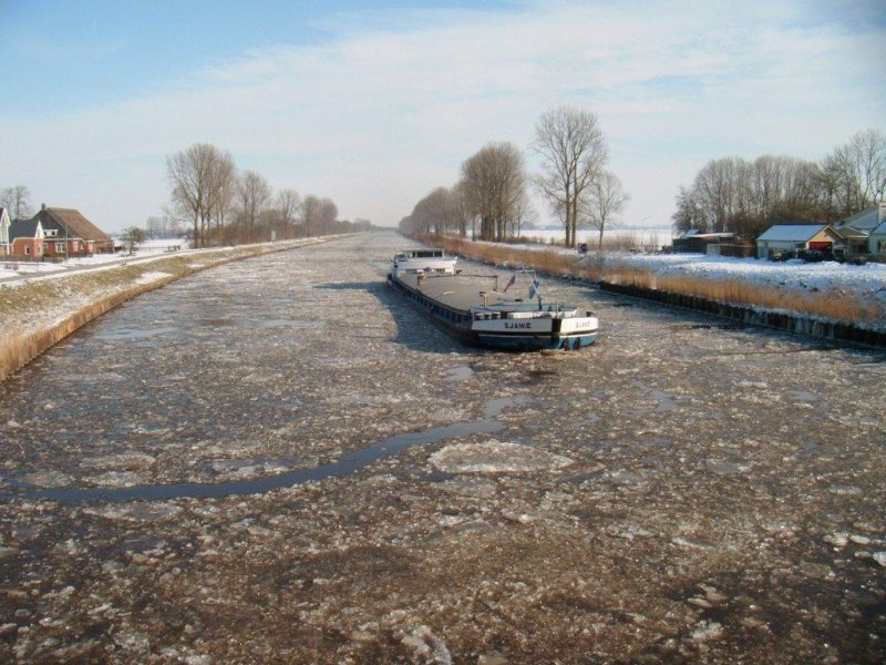: Veel ijsschotsen op het Van Starkenborghkanaal ter hoogte van de brug Zuidhorn op 6 februari 2012.