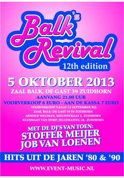 voor de 12e keer in zaal Balk te Zuidhorn het jaarlijks terugkerende legendarische Balk's Revival met muziek uit de jaren 80 met DJ's Stoffer Meijer en Job van Loenen.