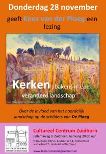 Kees van der Ploeg geeft een lezing over de bekende Groninger schilderclub “De Ploeg”. Deze schilders maakten veel werken in de directe nabijheid van de stad Groningen. Het werk staat bekend als expressief en specifiek kleurgebruik.