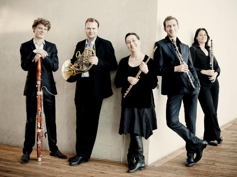Fluitiste Marieke Schneemann, hoboïste Pauline Oostenrijk, klarinettist Lars Wouters van den Oudenweijer, hoornist Ron Schaaper en fagottist Bram van Sambeek: