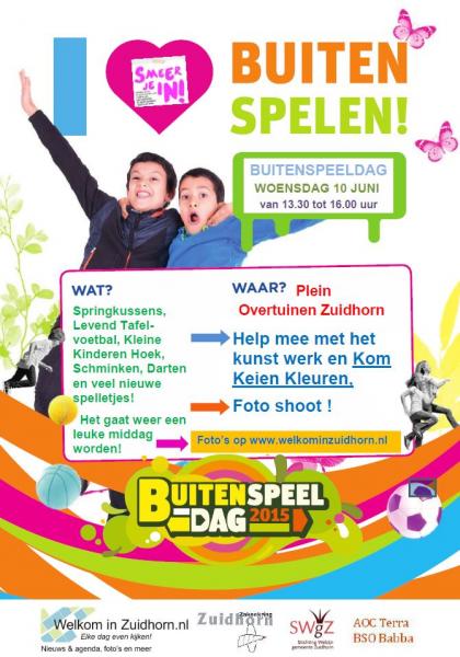 De kinderen kunnen weer naar hartenlust spelen op de buitenspeeldag 2015. Er zijn veel leuke activiteiten zoals springkussens, glijbanen, levend tafelvoetbal en andere ( behendigheids ) spelletjes. Door de gedane activiteiten af te laten tekenen op de deelname kaartjes kan er een traktatie worden verdiend.