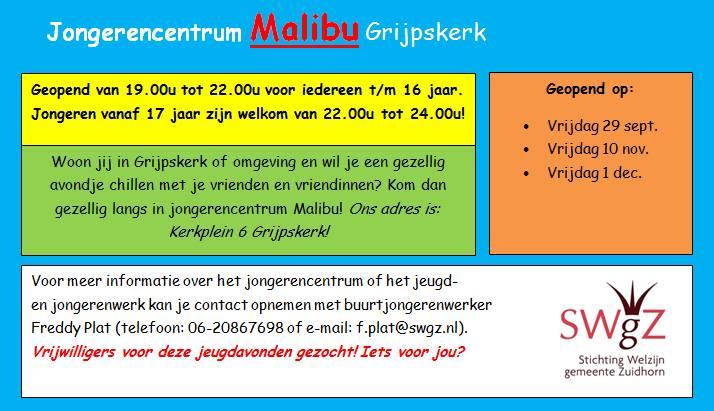 Voor iedereen t/m 16 jaar. Activiteit van Jongerencentrum Malibu.