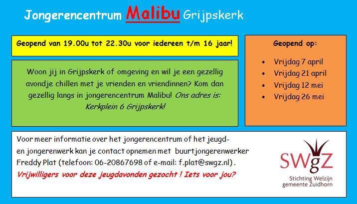 Voor iedereen t/m 16 jaar. Activiteit van Jongerencentrum Malibu.