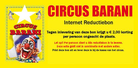 Circus Barani is een echt familiecircus van hoogstaand niveau en een uitgebreid programma. Zo presenteert men luchtacrobatiek, tempojongleren, dierenacts met geiten, duiven, honden en pony's. Natuurlijk ontbreekt ook onze dolkomische clown die volwassene en kind weer flink aan het lachen zal maken niet. De show duurt ongeveer een uur en drie kwartier zodat ook de jongsten zich niet zullen vervelen.