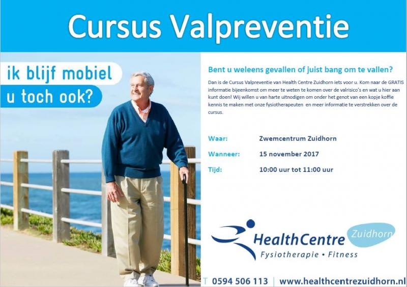 Dan is de Cursus Valpreventie van Health Centre Zuidhorn iets voor u. Kom naar de GRATIS informatie bijeenkomst om meer te weten te komen over de valrisico’s en wat u hier aan kunt doen! Wij willen u van harte uitnodigen om onder het genot van een kopje koffie kennis te maken met onze fysiotherapeuten en meer informatie te verstrekken over de cursus.