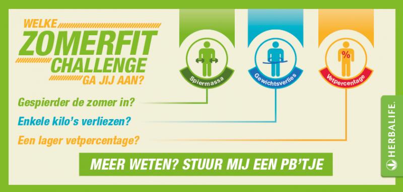 Voor deze doelstellingen heb ik als onafhankelijk Herbalife distributeur geweldige voedingsproducten van Herbalife , die helemaal te personaliseren zijn naar ieders behoefte. Om optimaal resultaat te behalen en fit de zomer in te gaan, is beweging ook een cruciale factor. Daarom bestaat de totale Challenge uit een cocktail van drie hulpmiddelen: