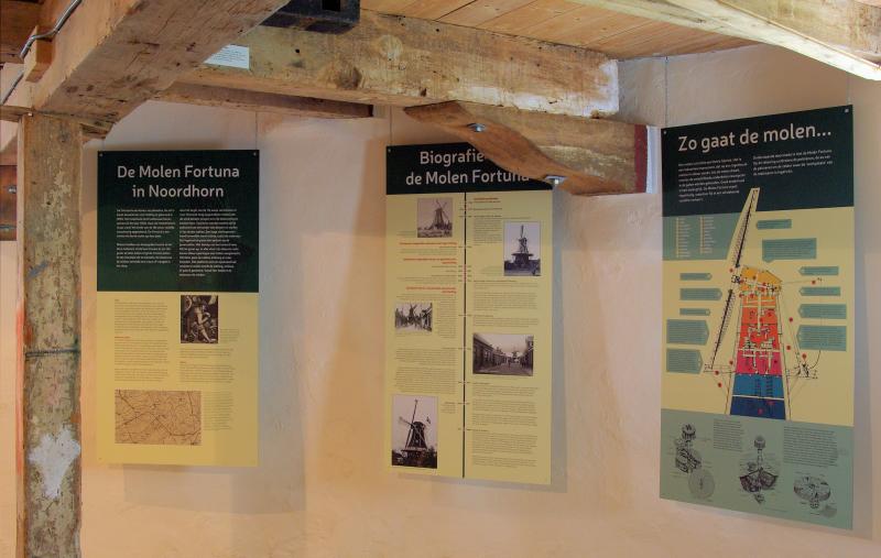 Deze expositie is onderdeel van het project Verschanst in het Westerkwartier. Op de onderste verdiepingen zijn grote panelen met tekst en illustraties gekomen en een vitrine met bodemvondsten uit de tijd van de schansenkrijg. Ook allerlei attributen, die te maken hebben met het werk van de molenaars zijn er uitgestald. Verder naar boven demonstreren de molenaars hun werk en geven hier graag uitleg over.