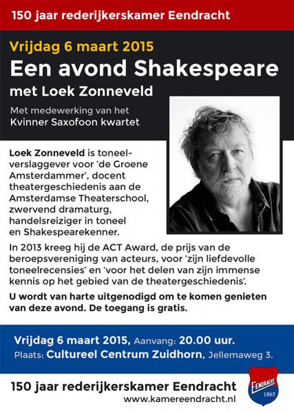 Rederijkerskamer Eendracht onganiseert een avondje Shakespeare met Loek Zonneveld.