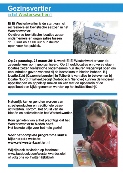 Voor de achtste keer op rij wordt op 2e paasdag, in het Westerkwartier tussen 11.00 en 17.00 uur de jaarlijkse start van het toeristische seizoen georganiseerd.