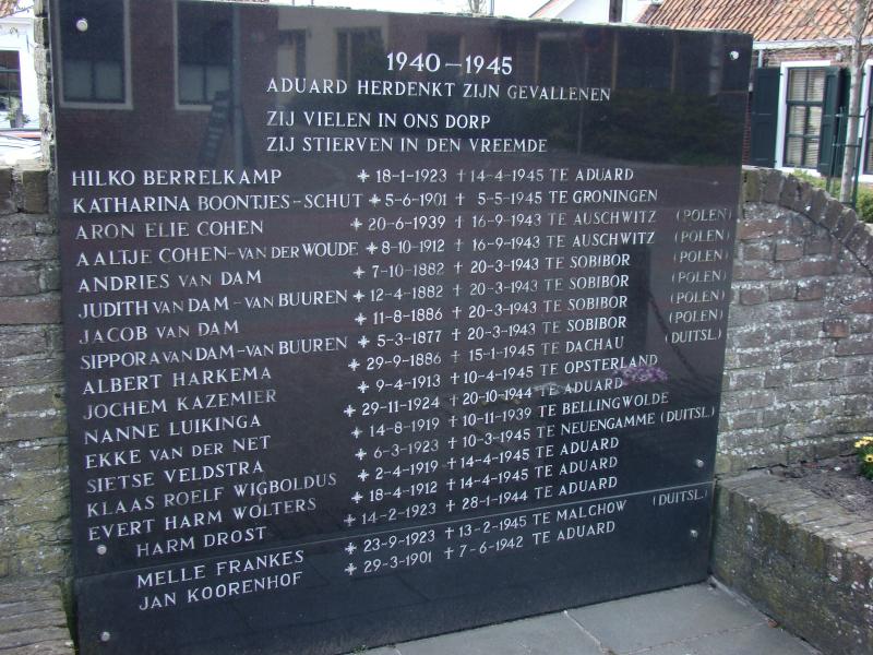 Het 4 mei comité van Aduard weet van elke naam waar en wanneer elk slachtoffer gestorven is. Het betreft Joodse inwoners die vermoord zijn in vernietigingskampen, verzetsstrijders die tijdens hun verzetsactiviteiten van het leven zijn beroofd, boeren die om het leven kwamen tijdens de melkstaking, een soldaat die sneuvelde tijdens de uitoefening van zijn functie en mensen die helaas op het verkeerde moment op de verkeerde plek waren. De tentoonstelling toont ook de foto’s van de slachtoffers. Zo krijgt elke naam een gezicht.