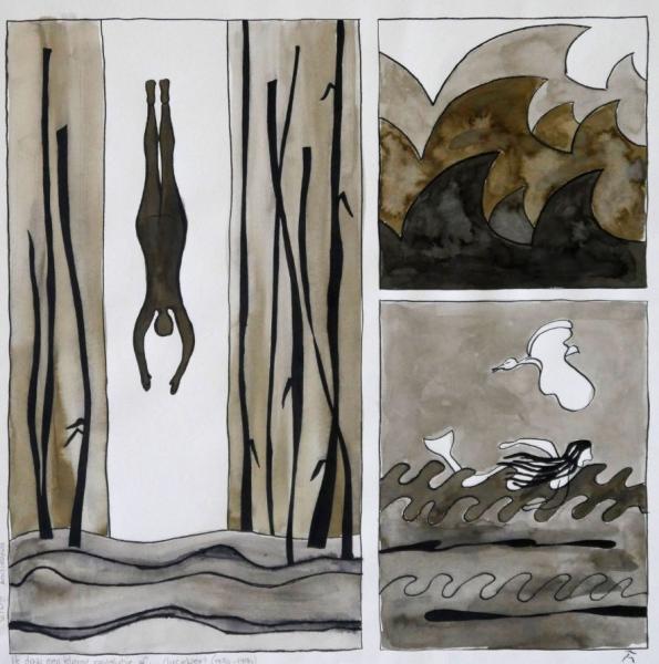 kunst. Lood, glas, veren, touw of haar; allerlei materiaal kan deel uitmaken van een ontwerp. In vrijwel alle gevallen hebben haar ‘beelden’ een spirituele lading die getuigt van een voortdurende zoektocht naar het eigen ik in relatie met het gekozen materiaal. Het verhaal dat ze vertelt roept tegelijkertijd spanning als evenwicht op.