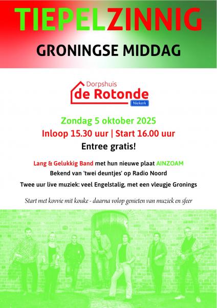 Entree gratis! Lang & Gelukkig Band met hun nieuwe plaat AINZOAM. Bekend van 'twei deuntjes' op Radio Noord