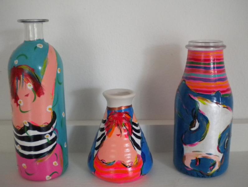 Na een periode te hebben gewerkt aan nieuwe werken met het thema "ik neem een bloemetje voor je mee" exposeer ik een aantal weken deze werken in mijn huis.