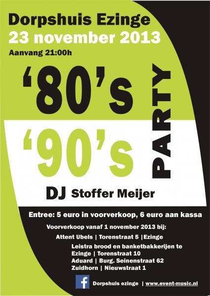 Op zaterdag 23 november is er in het Dorpshuis Ezinge een jaren 80&90 Party in samenwerking met Event Music. Aanvang 21.00 uur.