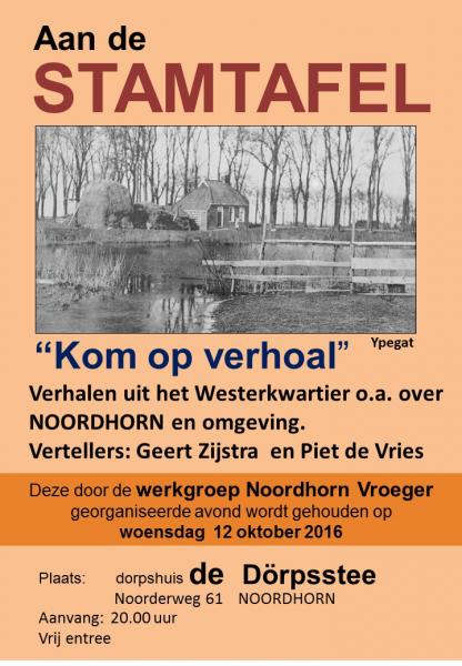 Historische stamtafel ‘Kom op Verhoal in Noordhörn’ op woensdagavond 12 oktober a.s.
