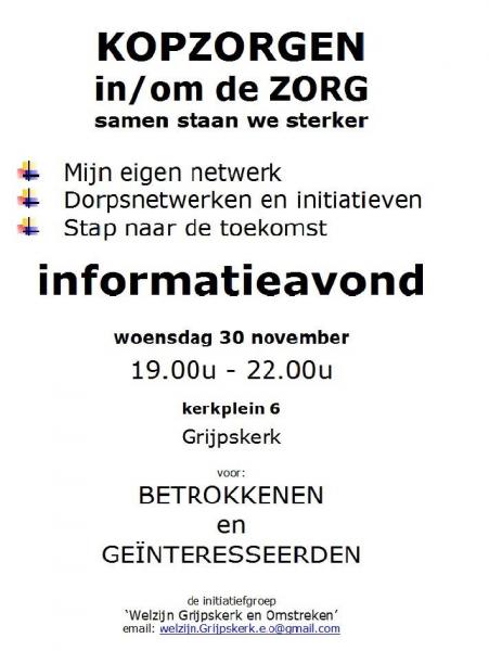 Informatieavond rondom de Zorg georganiseerd door de werkgroep Welzijn Grijpskerk en omstreken.