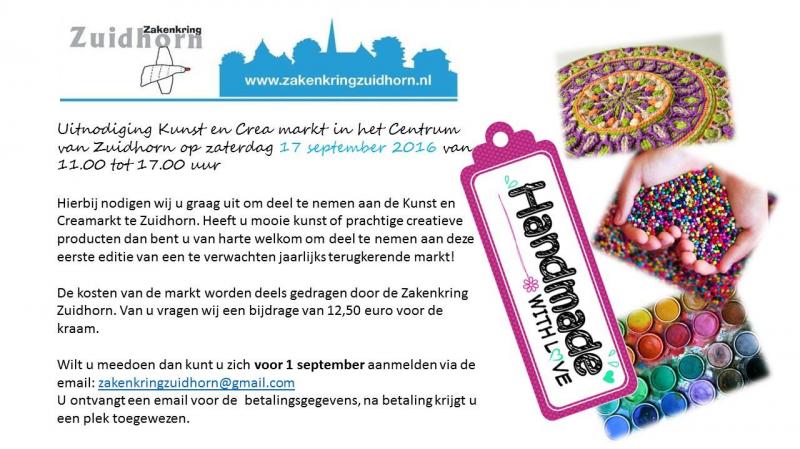 Verschillende standhouders met leuke, kunstige en handgemaakte dingen! tandhouders kunnen zich nog aanmelden via zakenkringzuidhorn@gmail.com ( voor 1 sept )