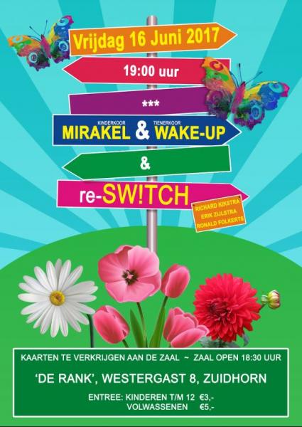 Mirakel bestaat uit 14 kinderen in de leeftijd van 6 tot 10 jaar en ze staan onder leiding van Annet Dwarshuis. Bij Wake-up zingen 13 enthousiaste tieners met hun dirigent Janty Buursema.