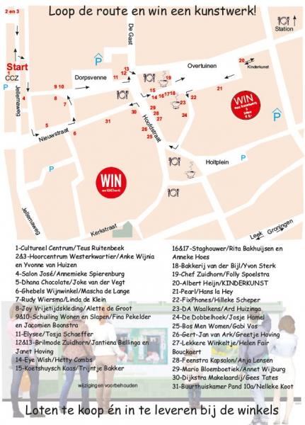 Bij de deelnemende winkeliers zal weer een handige routebeschrijving gratis verkrijgbaar zijn. Ook zijn daar loten te koop.