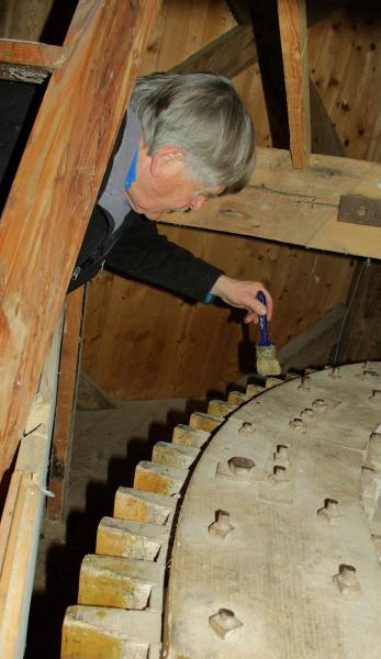 Doel is de molen bedrijfsklaar en opgeruimd te maken voor het nieuwe seizoen. Prioriteit hebben allerlei schoonmaak- en schilderwerk en natuurlijk het invetten en smeren van de draaiende delen.