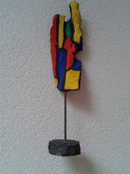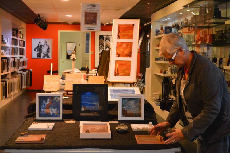Diverse werken van Trijntje. Het zijn objecten samengesteld uit op het strand gevonden materialen.