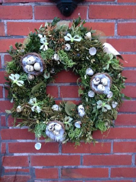 Het bestaat uit een basis van stro waar diverse groen soorten omheen worden gewikkeld en daarna versierd met eitjes,touw e.d na uw eigen keuze.
