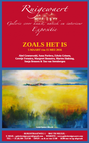 In deze expositie heeft Ruigewaert aan 8 Noordelijke kunstenaars gevraagd om rond het thema ZOALS HET IS kunstwerken te maken. Zaterdag & zondag van 12.00 – 18.00 uur en op afspraak