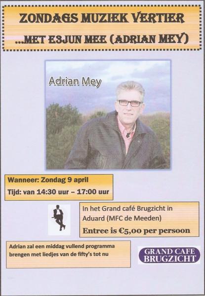 Adrian Mey zal een middagvuillendprogramma brengen met liedjes van e fifty's tot nu. Entree € 5,-