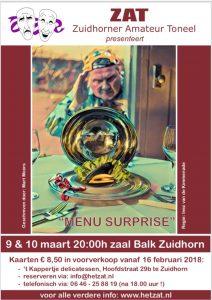 Door Zuidhorner Amateur Toneel ."Meneer" Gaston de Kroon heeft een snackbar overgenomen en heeft al zijn geld, tijd en energie er in gestoken om het te veranderen tot een eersteklas toprestaurant. De opening is slechts over een paar uur.