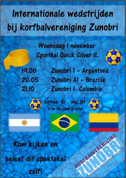 Brazilie, Colomia en Argentine komen met hun internationals naar Nederland om mee te doen aan dit internationale toernooi, in de voorbereiding op dit toernooi zullen ze trainingen en oefenwedstrijden afwerken. Zunobri zal hen ontvangen, entree € 1