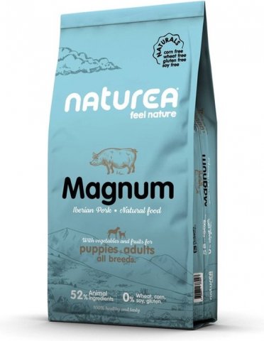 Dierendag aanbieding, 2 kilo Naturea Magnum iberian pork brokken voor je puppy of volwassen hond. Van 20,99 euro voor 15,99 euro.