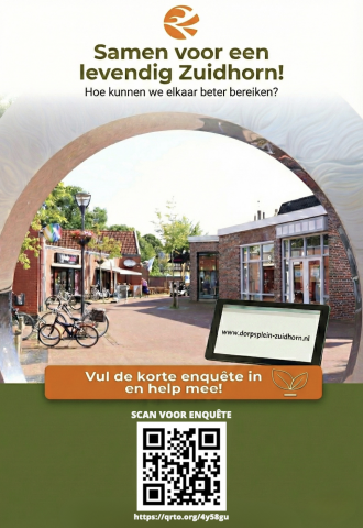 Lokale ondernemers in Zuidhorn willen gezamenlijk de zichtbaarheid vergroten en het dorp leefbaar houden. Immers, hoe meer voedsel, contact en geld in het dorp blijft circuleren hoe beter dat is voor de sociale cohesie en lokale leefbaarheid. Vul deze enquete in door de qr code te scannen of op de link hieronder te klikken en help de lokale ondernemers van Zuidhorn. https://forms.cloud.microsoft/Pages/ResponsePage.aspx?id=FJCzo9x6-kihFDfCQ029aUk7DdwNSxBGtpcEOTrjES9UOUxUU0owSkVIWjExUDZISDRLVzNDVDdMTS4u