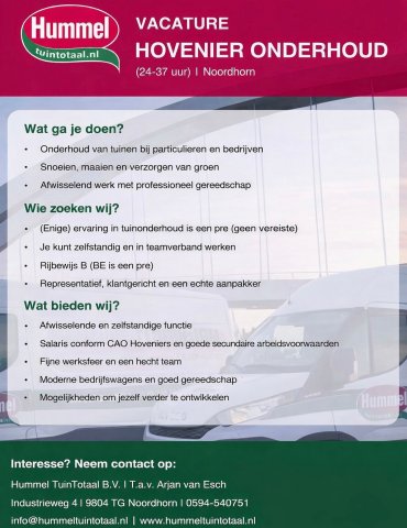 Vacature Hovenier onderhoud